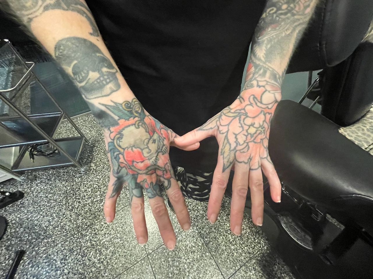 – De gamla maskinerna vibrerar mycket, jag jobbade också med dem när jag började, och har man tatuerat någon i fem timmar kan man nästan inte öppna handen när man lägger ifrån sig maskinerna, säger hon.