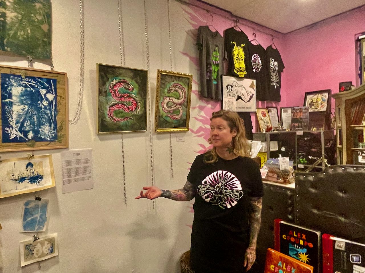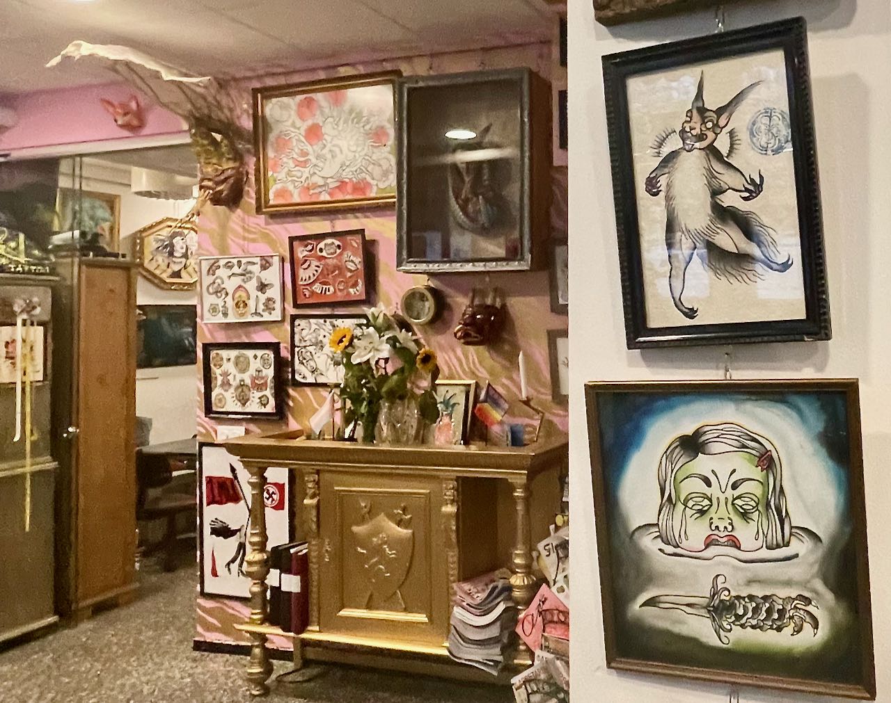 Sara Swanson tar emot i tatueringsstudion Sta. Demonia Tattoo i Stockholm. På den rosamålade väggen med guldfärgade strimlor hänger konst, t-shirtar med färgglada tryck. Intill, de små rummen där själva tatueringarna skapas och växer fram. En tatueringsstol, att sitta eller ligga på, smala skåp med verktyg. En samtidigt ombonad och klinisk känsla.