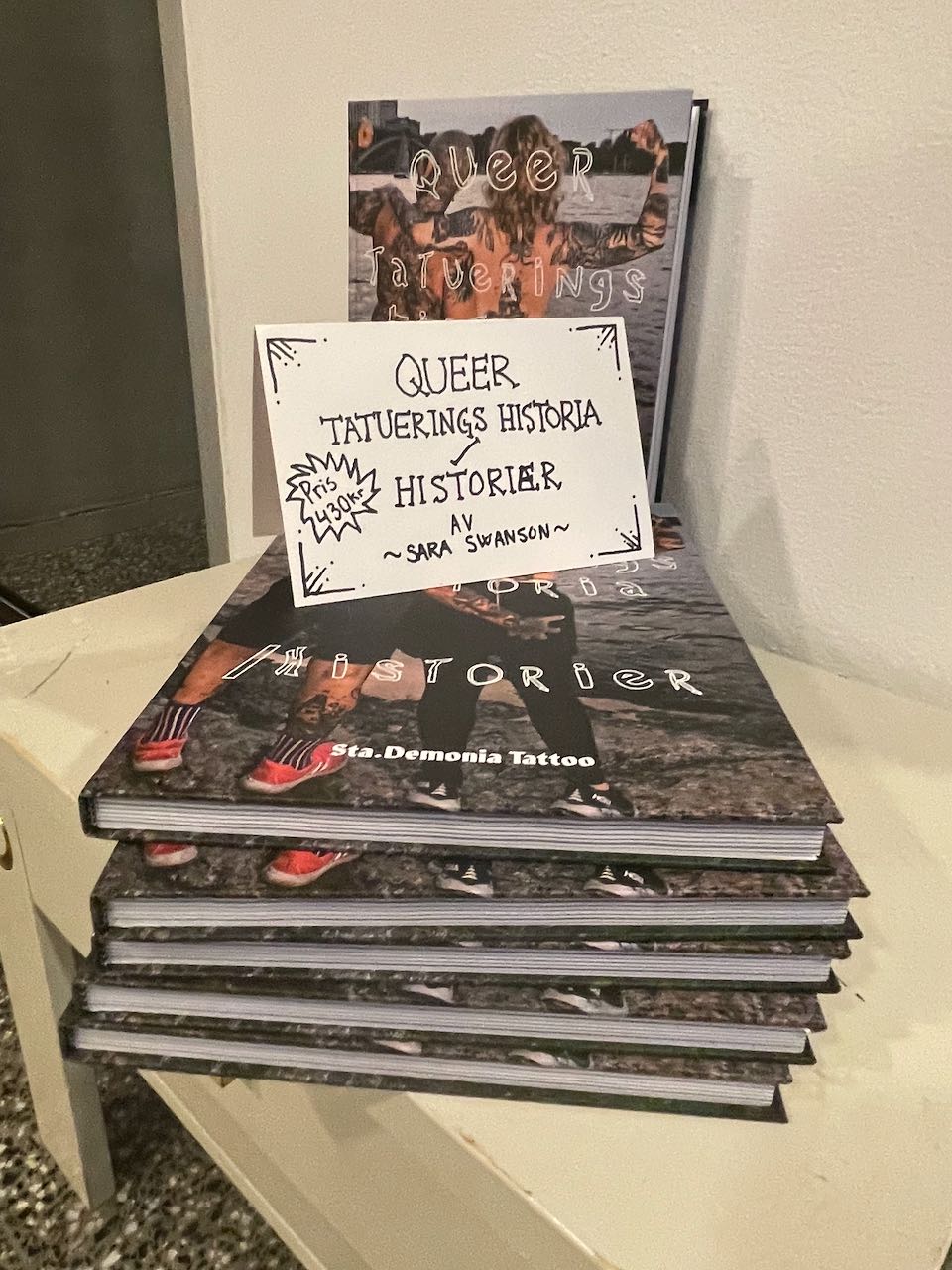 Queer tatueringshistoria/historier kom ut 2025. Boken har skrivits av Sara Swanson som har intervjuat 15 personer som på olika sätt har haft en betydelse för queer tatueringshistoria, och den har givits ut av tatueringsstudion Sta.Demonia Tattoo som drivs av Swanson och Soledad Aznar Rodriguez. Studion som öppnades i Barcelona, men sedan 2017 finns i Stockholm firar i år 20 år.