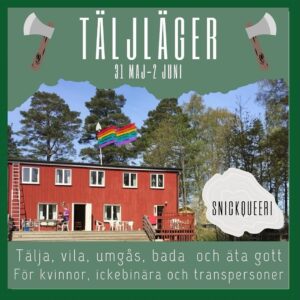 Logga för kvinnofolkhögskolan med ett rött oregelbundet streck