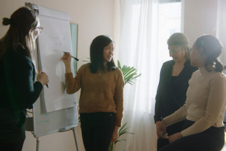 En tecknad bild med fem kvinnor för Kvinnor krokar arm