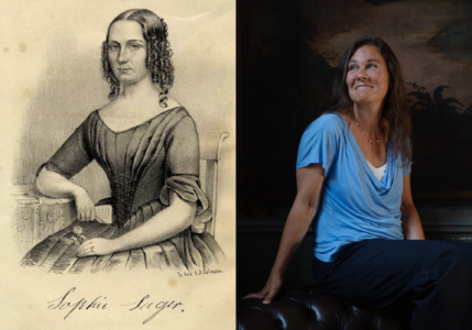 Ulla Nordfors, till höger omslag till hennes bok Sapphos Döttrar.