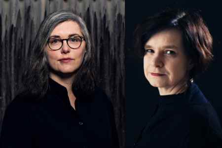 Fia Adler Sandblad och Annika B Lewis mot svart bakgrund.